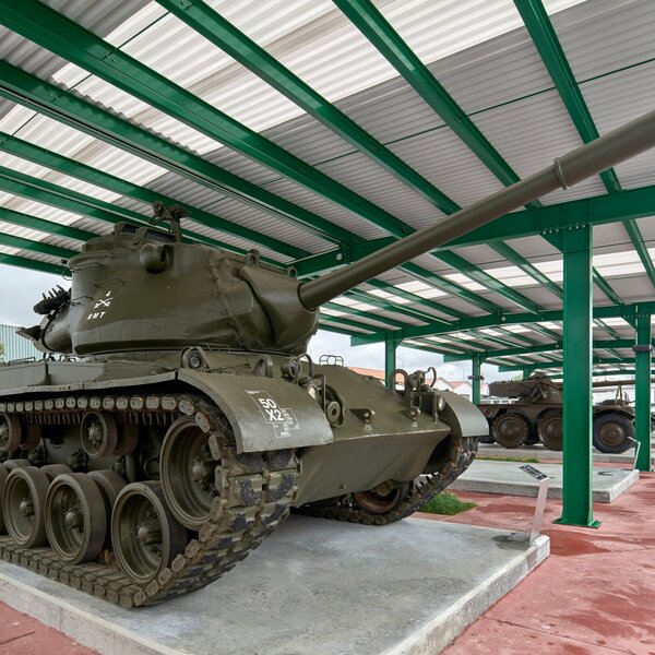 Foi construído um telheiro para albergar 6 veículos militares musealizados, os quais circularam pelas ruas no dia 25 de Abril de 1974. As suas designações e principais características encontram-se descritas nos totens que as acompanham, permitindo aos visitantes ficar a conhecer melhor esta vertente da história militar.