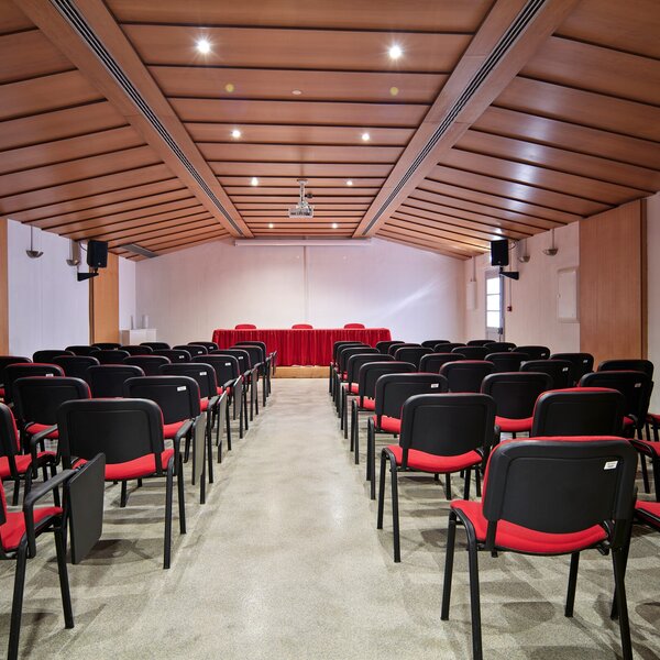 O auditório e a respetiva régie foram dotados de novos equipamentos audiovisuais que permitirão a realização de eventos de vária ordem, com uma maior qualidade de som e de imagem. Aqui é apresentado aos visitantes um pequeno vídeo sobre os acontecimentos de 25 de Abril de 1974, com enfoque no Posto de Comando. A capacidade da sala é de cerca de 70 pessoas.