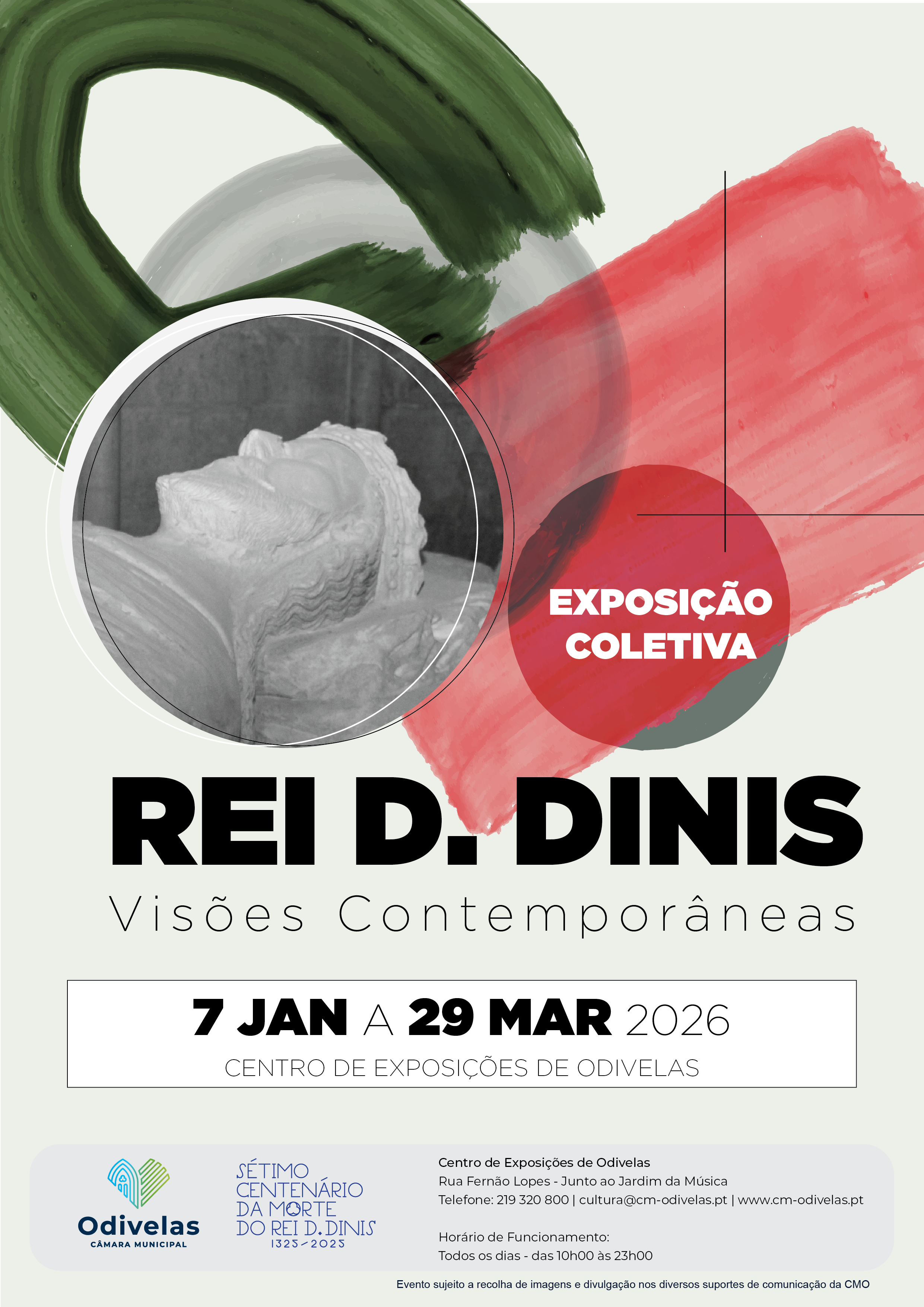 A Divisão de Cultura e Turismo e Gabinete de Investigação e Promoção do Mosteiro de Odivelas, com o objetivo de assinalar o sétimo centenário da morte do Rei D. Dinis, irão realizar uma exposição coletiva, intitulada "Rei D. Dinis: Visões Contemporâneas", patente no Centro de Exposições de Odivelas, no período compreendido entre os dias 07 de janeiro e 29 de março de 2026.