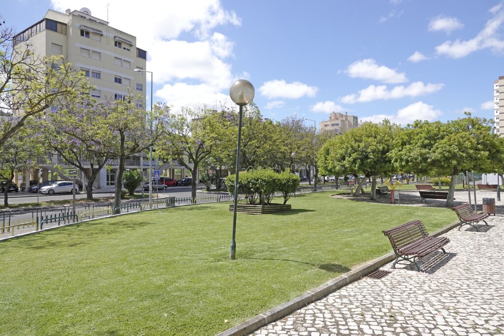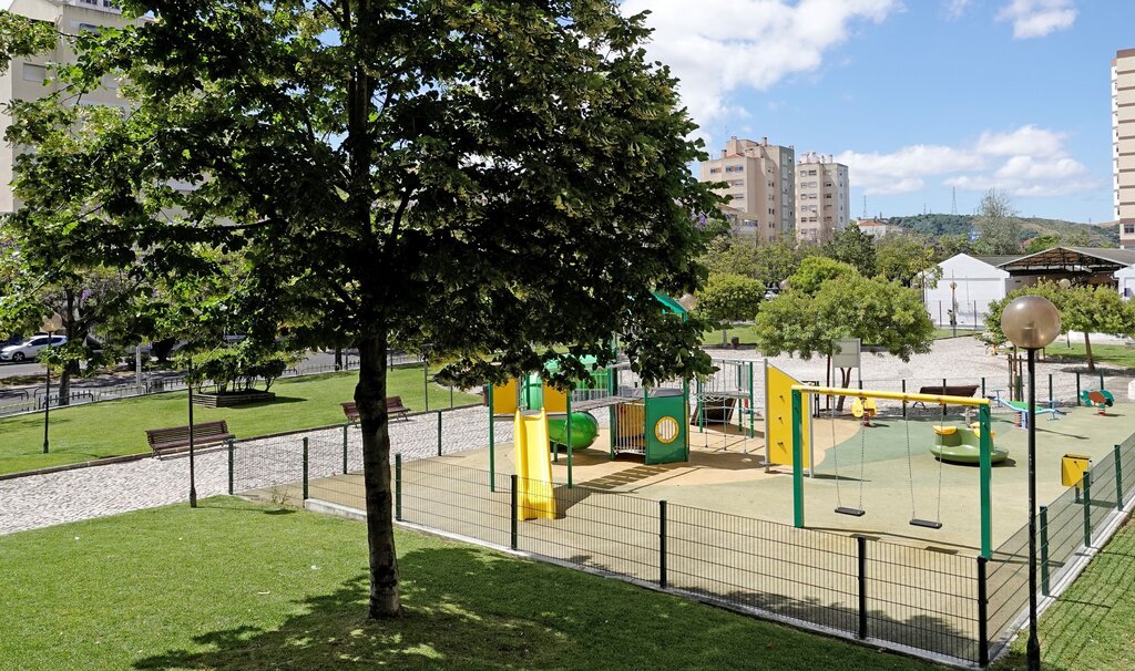 O espaço contempla, bancos, um parque infantil e equipamentos bio saudáveis.