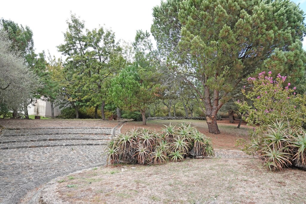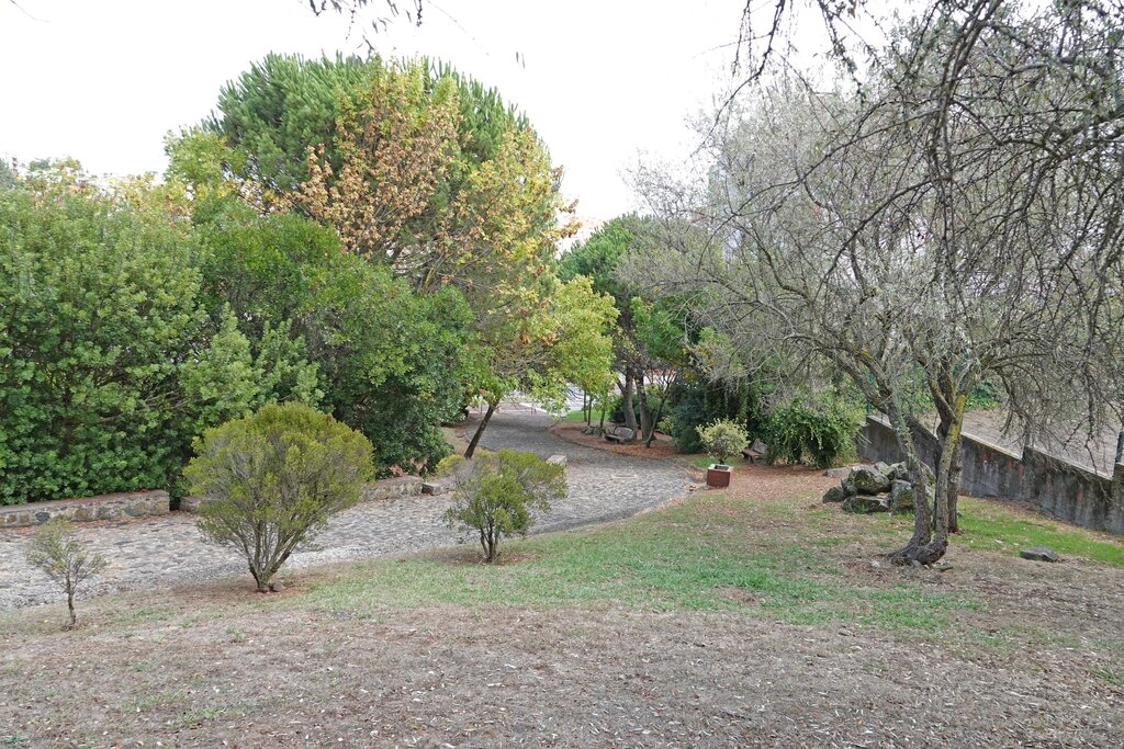 Algumas espécies que pode observar no jardim: Pinheiro manso, Grevílea, Alfarrobeira, Oliveira-do-paraíso e Aloés.