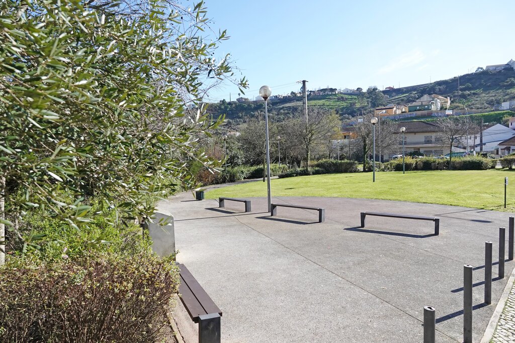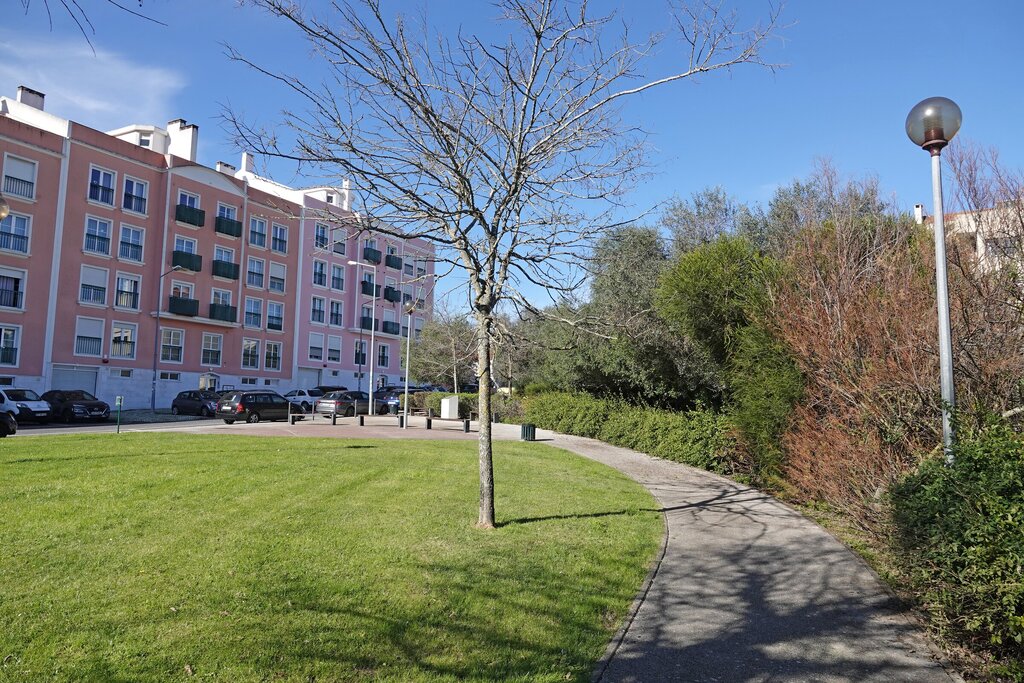Zona verde de enquadramento dos edifícios da urbanização Quinta do Cerrado na Rua da Enfermagem Portuguesa, Caneças, com cerca de 4.237 m2.